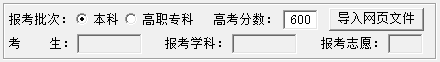 使用時只需選擇‘報考批次’、輸入分數、導入‘網頁文件(考生網上提交志愿后導出的.html文件)’即可。